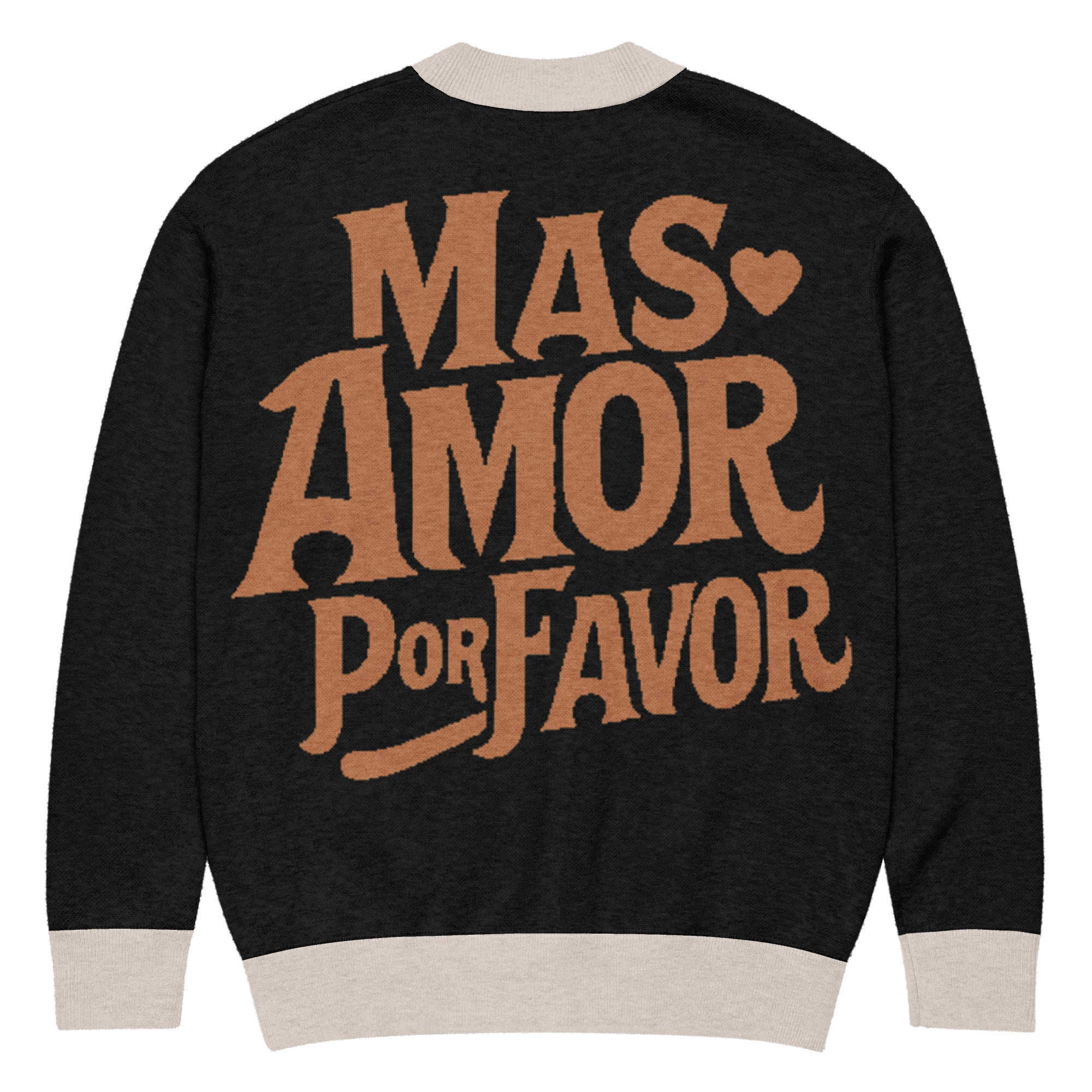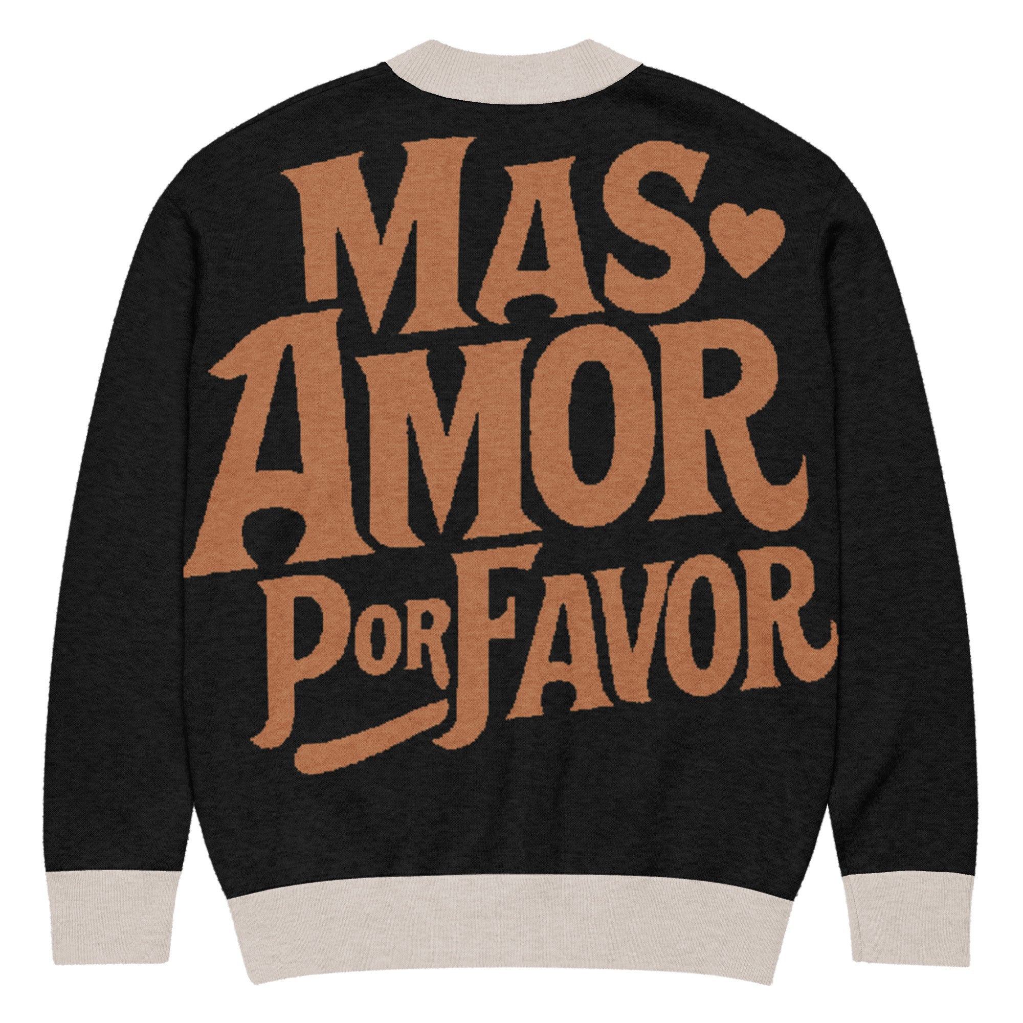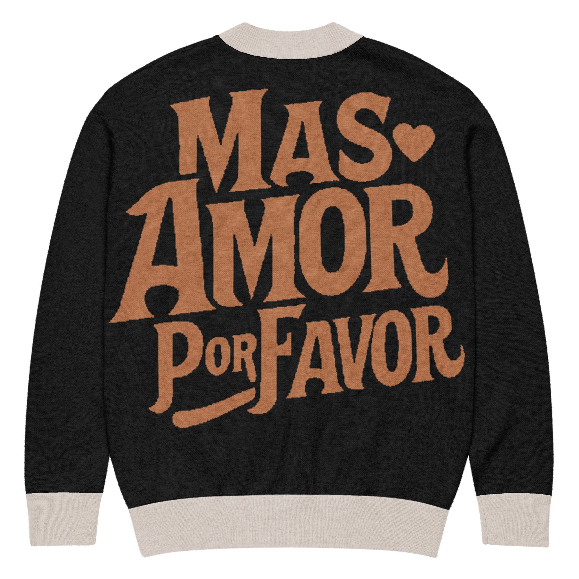 Wrap yourself in warmth and good vibes with our Más Amor Por Favor Knitted Cardigan a cozy reminder that the world always needs more love, please.