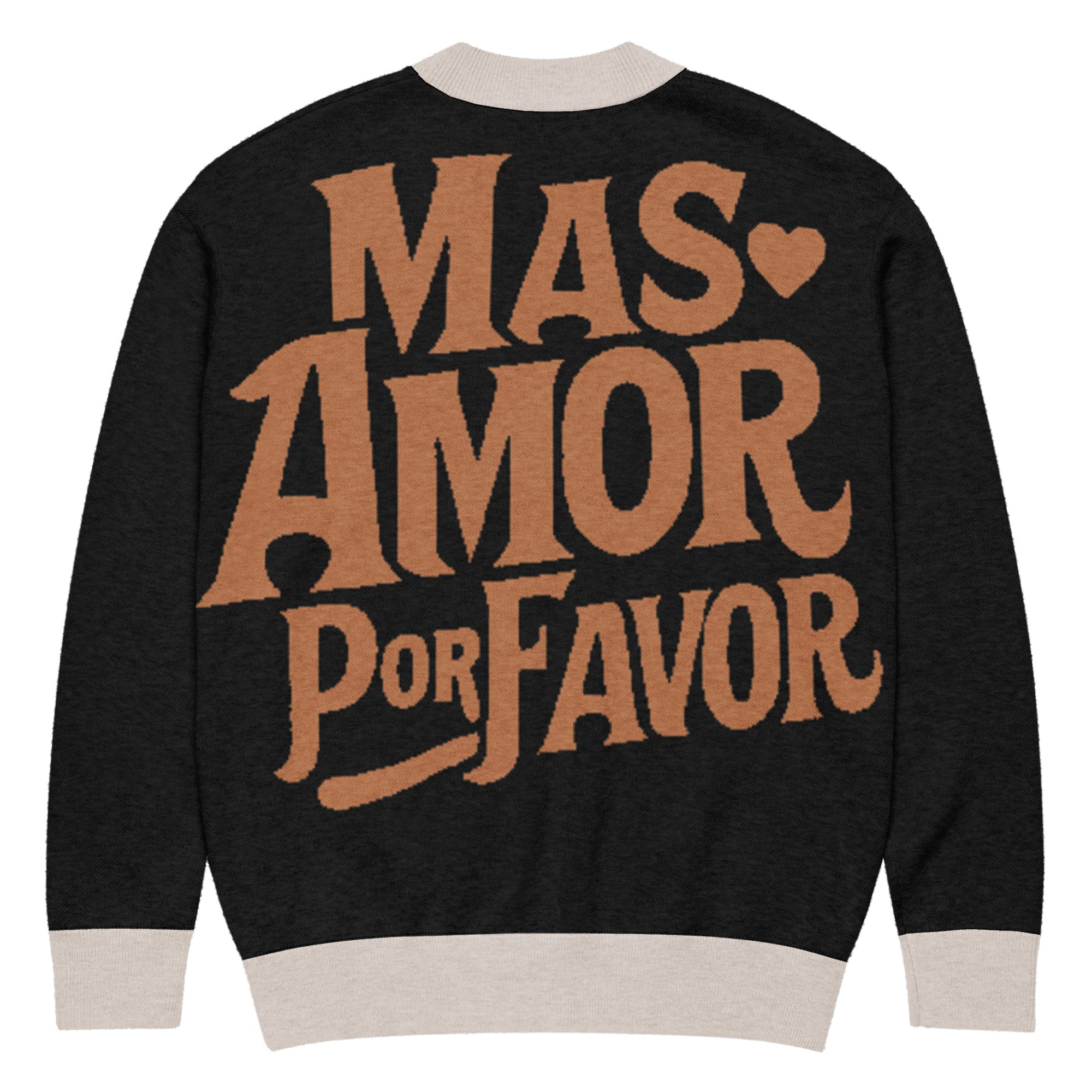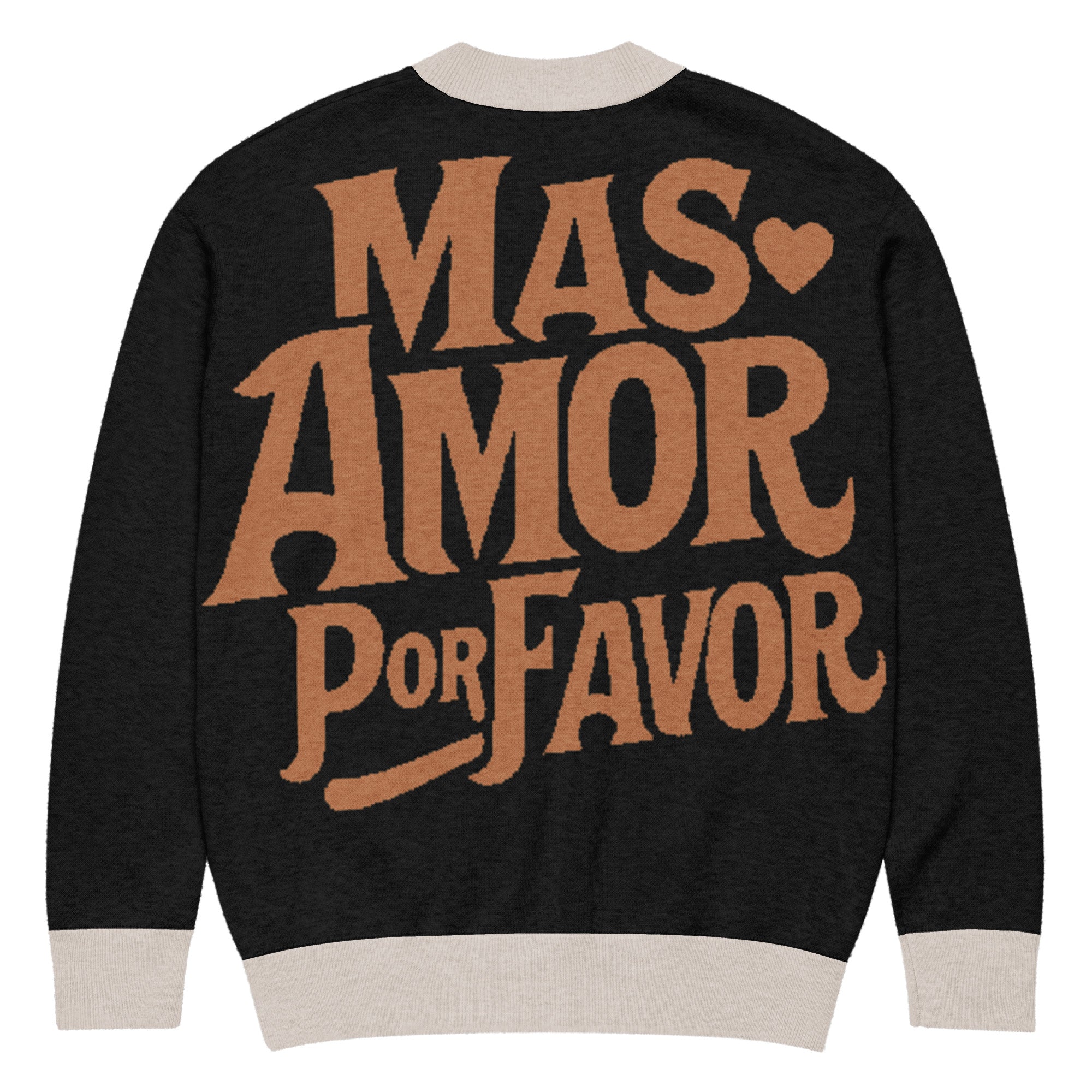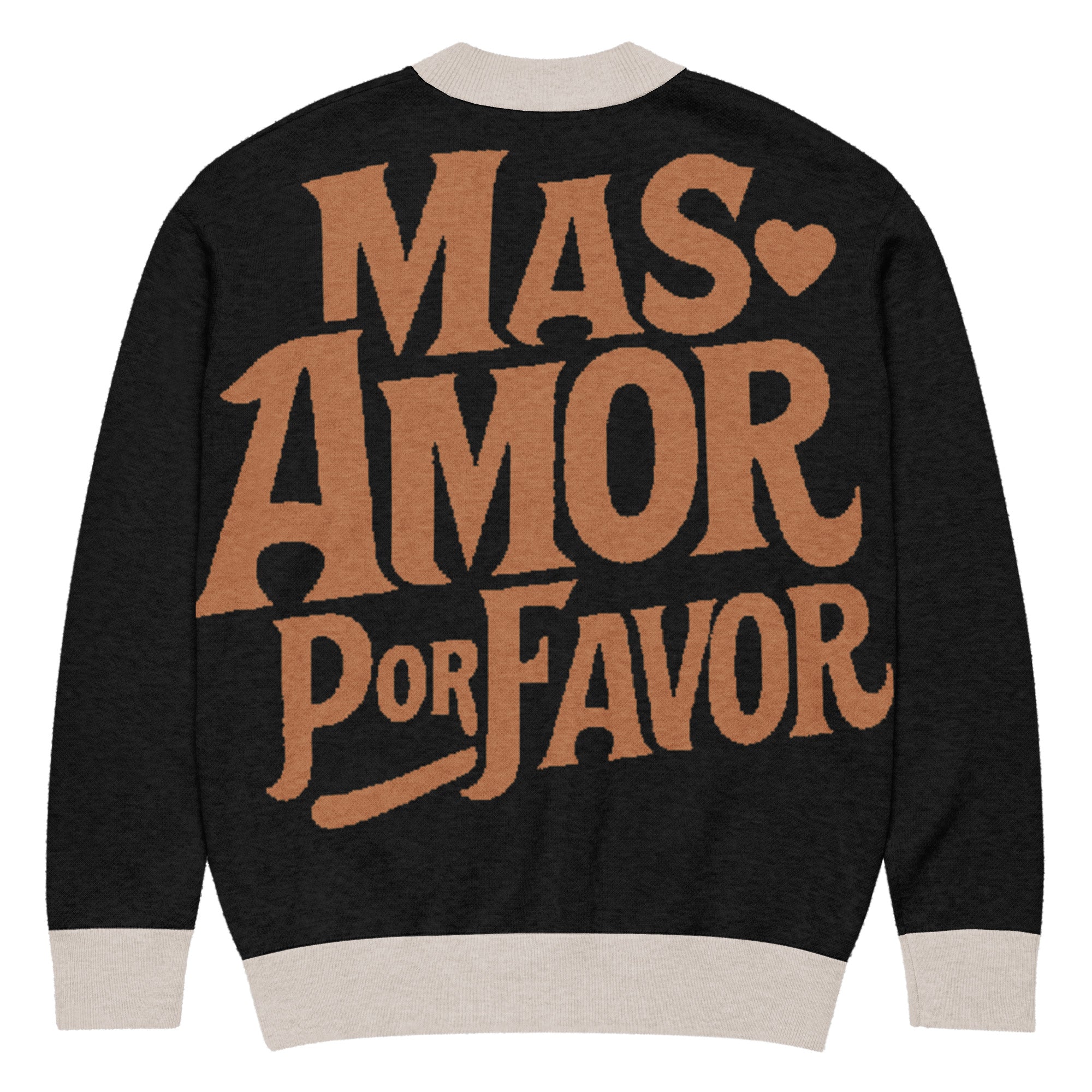 Wrap yourself in warmth and good vibes with our Más Amor Por Favor Knitted Cardigan a cozy reminder that the world always needs more love, please.