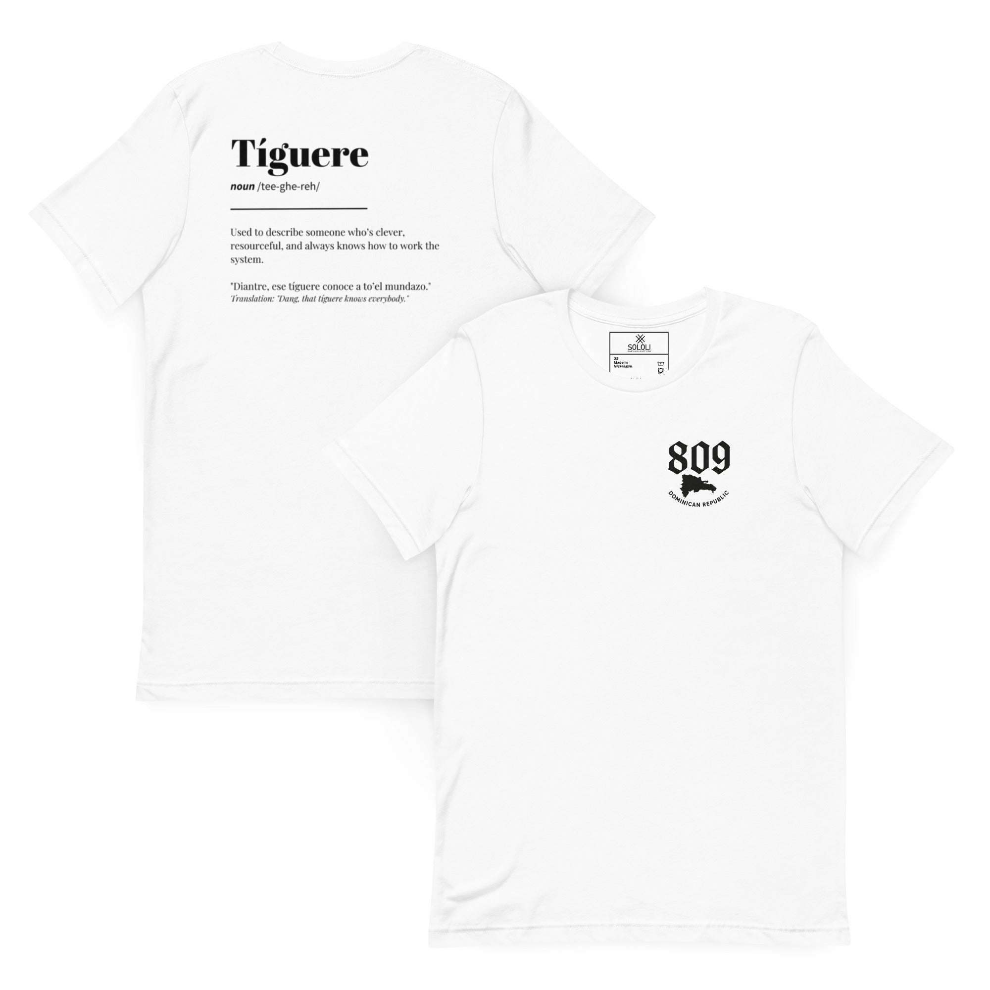 Crafted from soft, lightweight cotton, this unisex tee is designed for all day comfort and effortless style. On the front, it proudly features 809 with the map of the DR, while the back breaks down the meaning of Tíguere a word that defines a culture and a vibe.