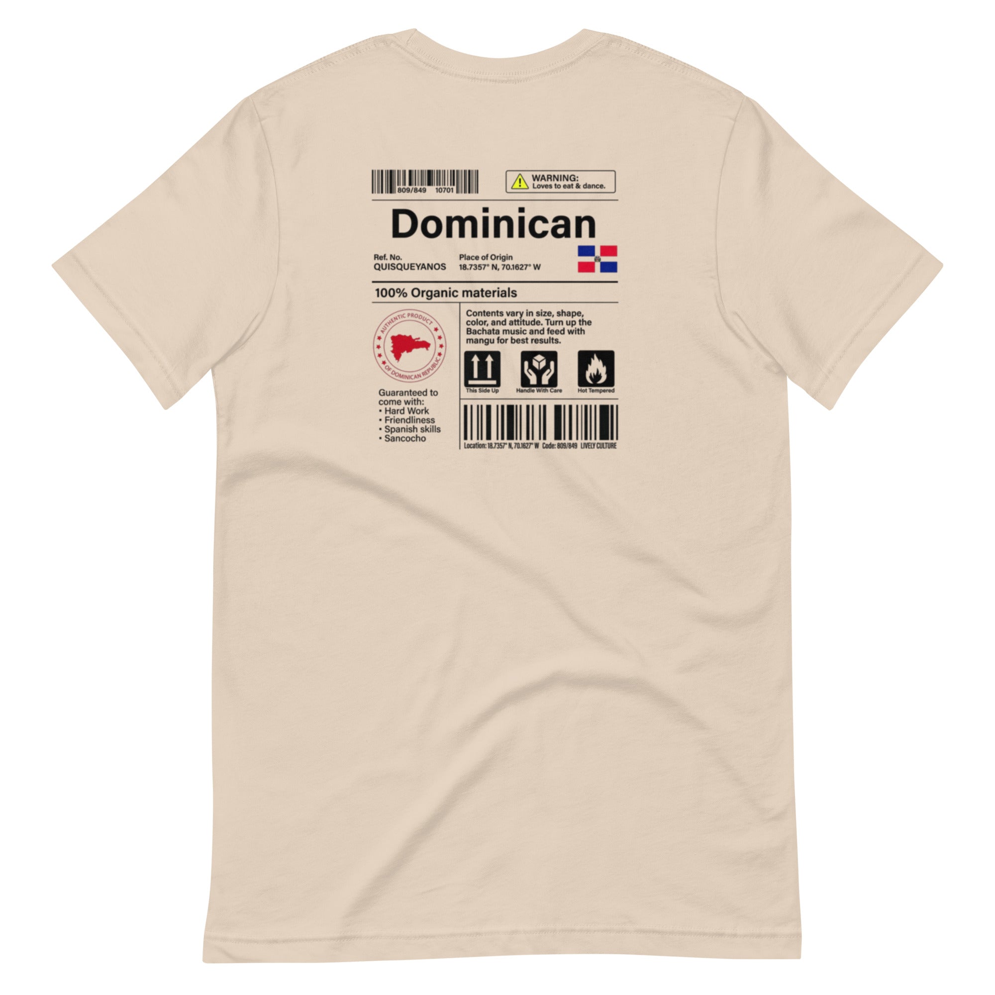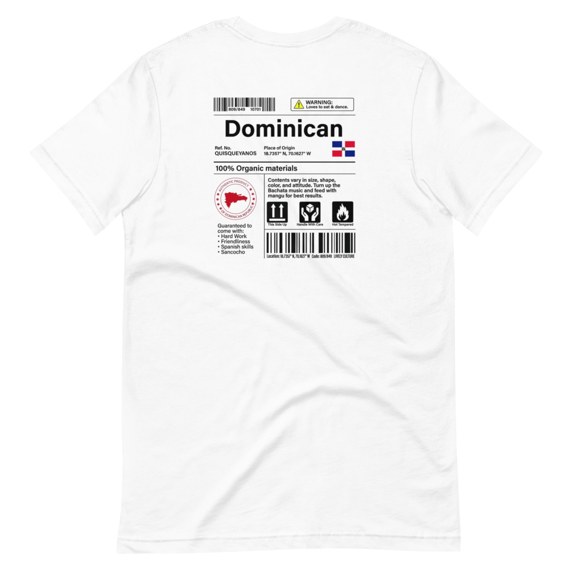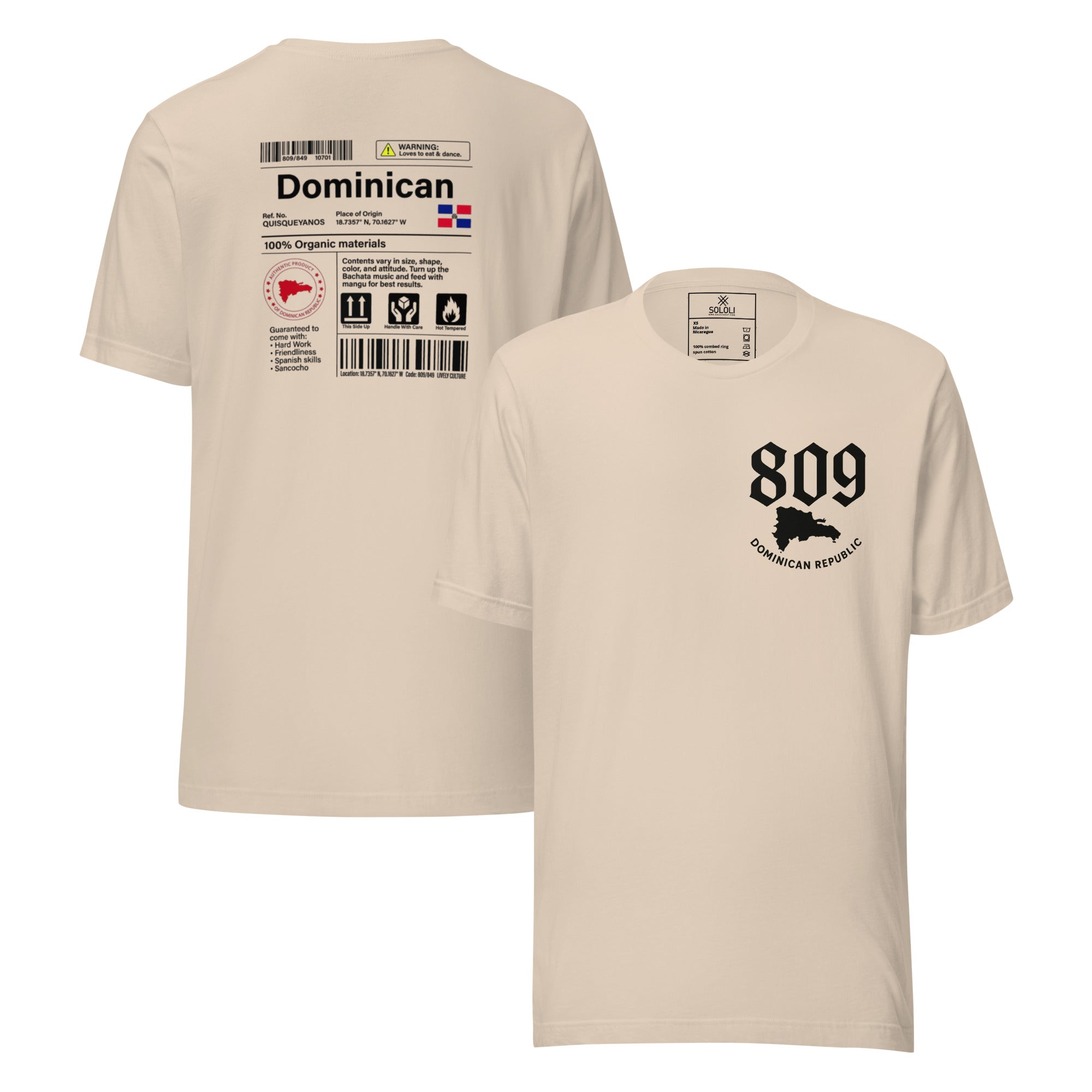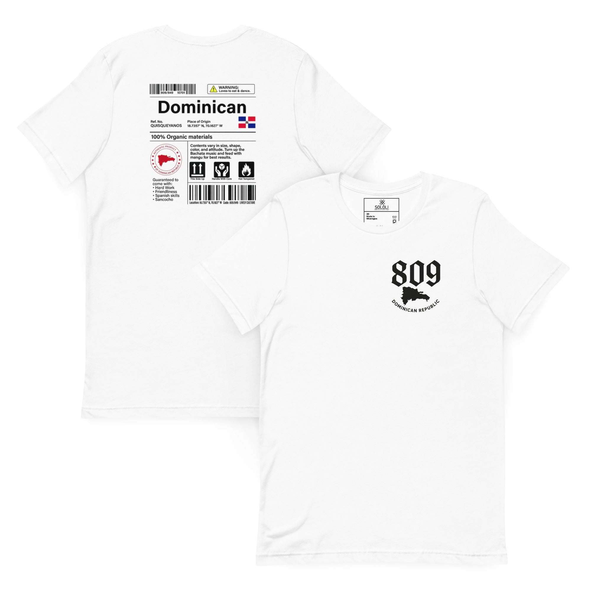 Wear your roots loud and proud with the Dominican Barcode 809 Tee. On the front, it keeps it clean and bold with the 809 and the map of the Dominican Republic. On the back, it flips the script with a barcode inspired design featuring playful details like “100% Organic Materials,” “Guaranteed to love rice, beans, and sancocho,” and even a warning label: Dominican vibes ahead.