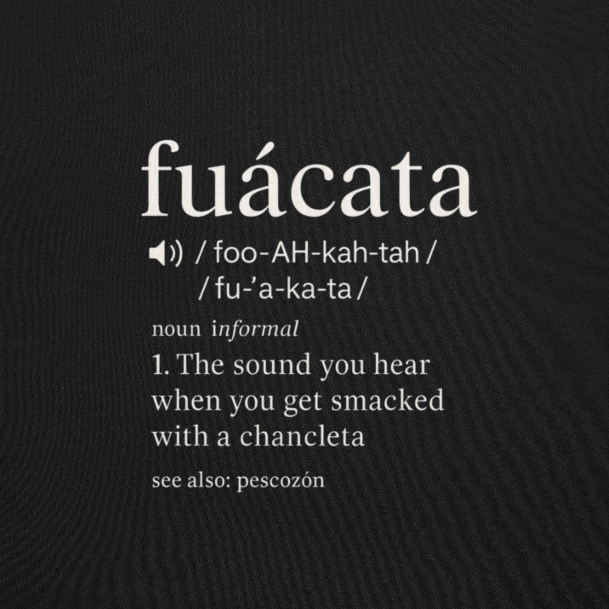 Rep your roots with attitude in our Fuácata 809 Dominican Republic T-Shirt. Featuring “809” with the Dominican Republic map on the front and a bold fuácata definition on the back, this tee is a playful nod to Dominican culture. If you grew up knowing the sound of a chancleta 🩴, this shirt will hit home (literally).
